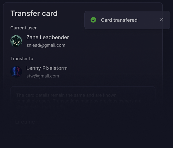 Quickly transfer cards between users and accounts.
