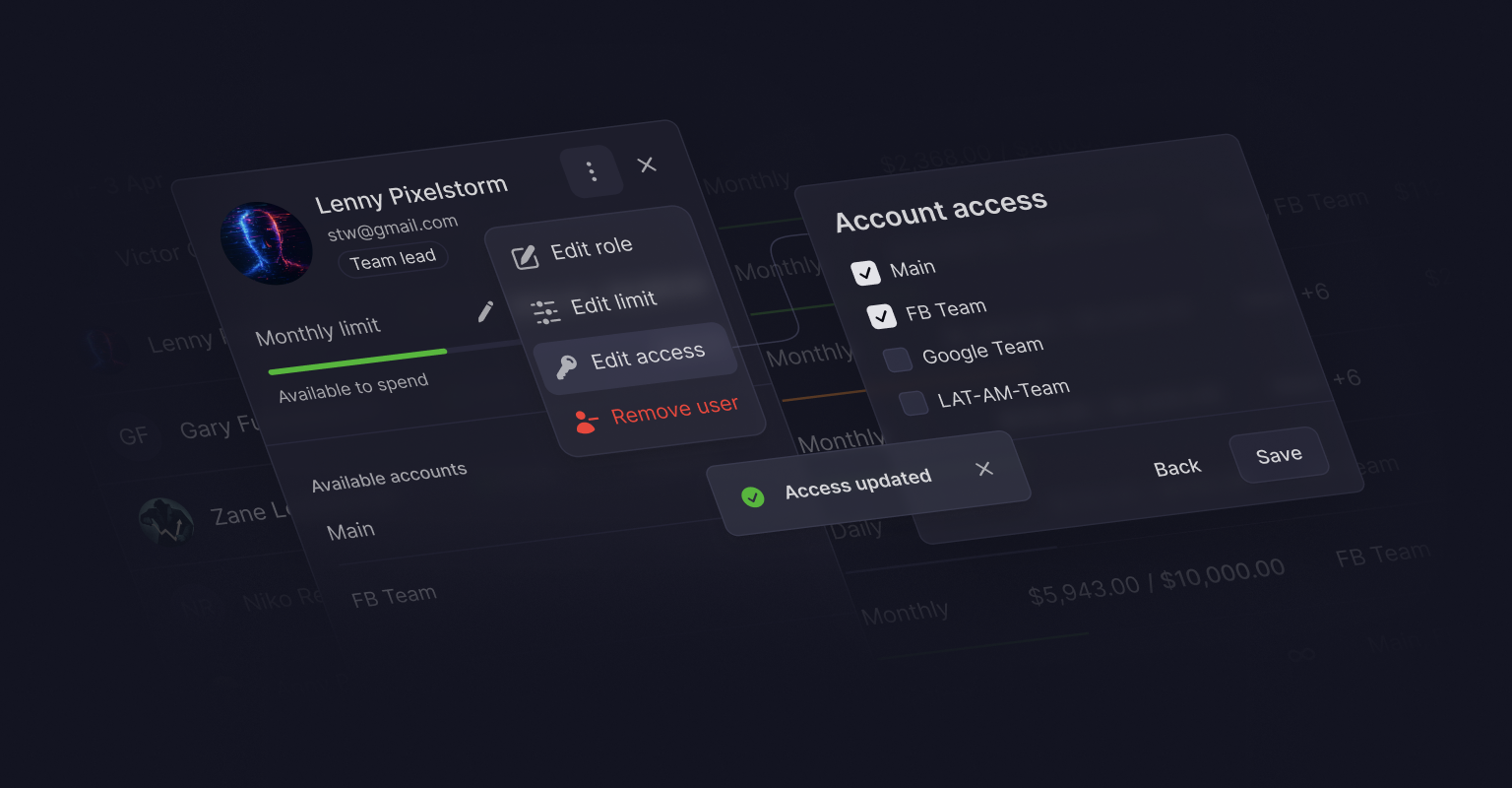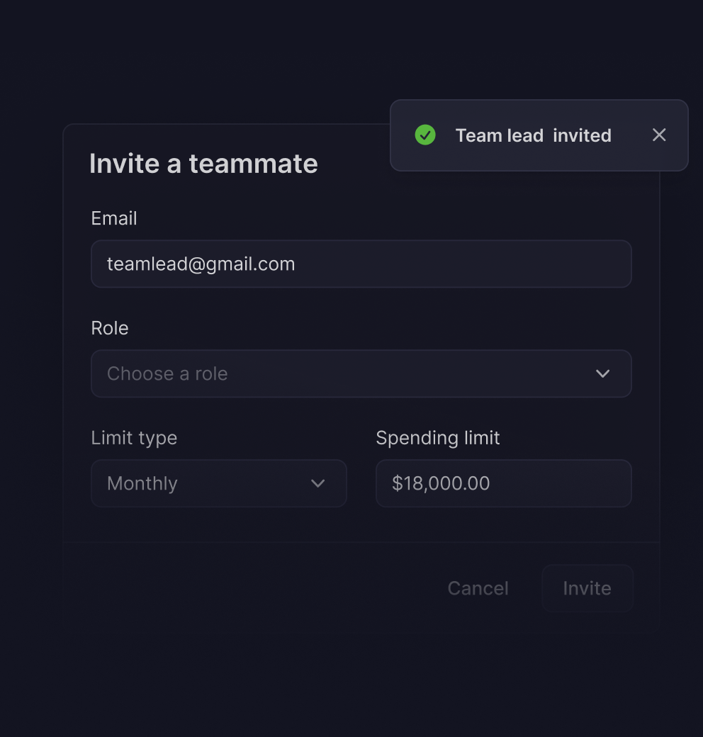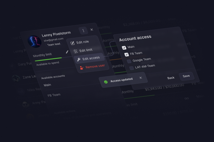 Налаштовуйте ролі, ліміти та доступні рахунки ще до того, як новий користувач отримає доступ.