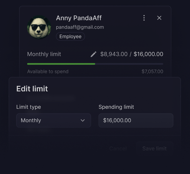Ліміти можна встановлювати не лише для карток, а й для користувачів.